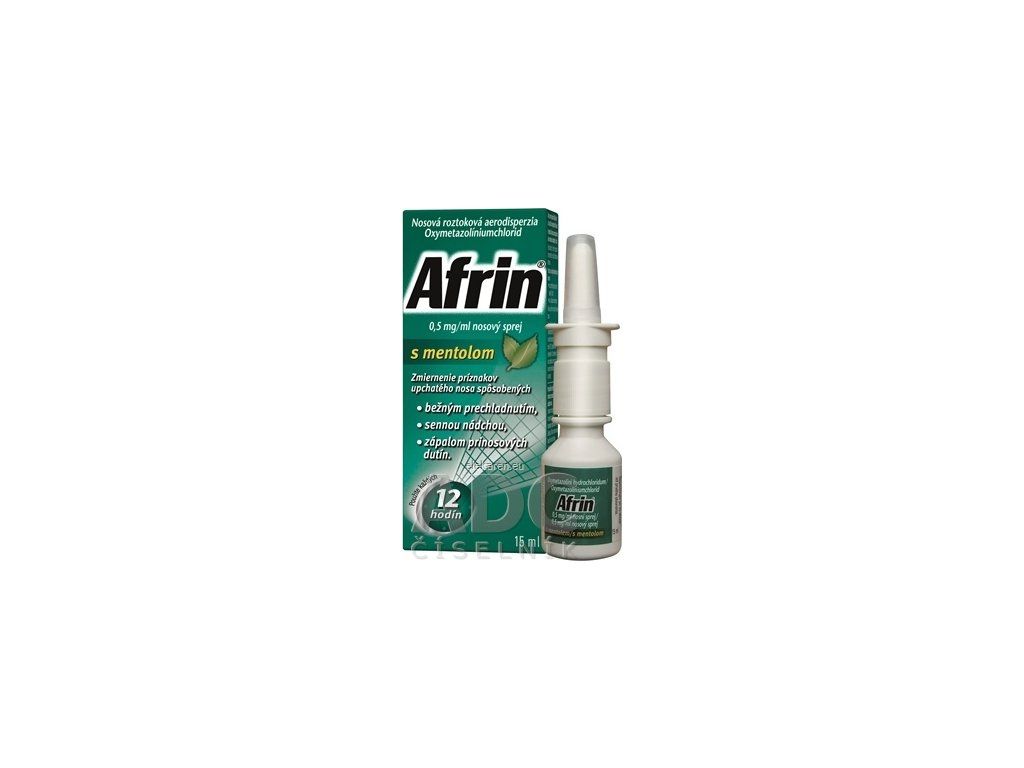| Názov produktu podľa ŠÚKL: | Afrin 0,5 mg/ml nosový sprej s mentolom aer nao 1x15 ml (fľ.HDPE) |