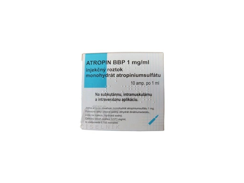 | Názov produktu podľa ŠÚKL: | ATROPIN BBP 1 mg/ml sol inj 10x1 ml/1 mg |