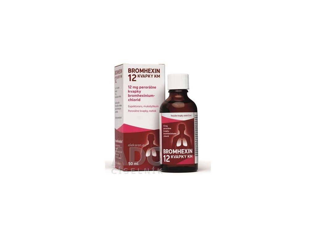 | Názov produktu podľa ŠÚKL: | BROMHEXIN 12 KVAPKY KM gtt por 1x50 ml (liek.skl.hnedá+kvapkadlo) |