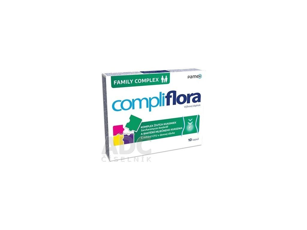 Výživový doplnok. Komplex so živými kultúrami kvasiniek Saccharomyces boulardii a baktériami mliečneho kvasenia. 6 miliárd CFU v dennej dávke. Produkt obsahuje aj oligofruktózu.