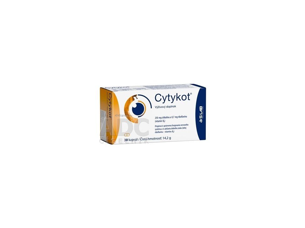 Výživový doplnok s obsahom citikolínu (cytidíndifosfátcholín) (250 mg) a riboflavínu (vitamín B2) (0,7 mg) (v 1 kapsule).
