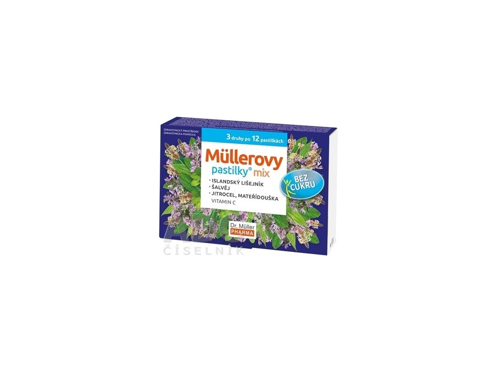 - Müllerove pastilky šalvia a vitamín C.