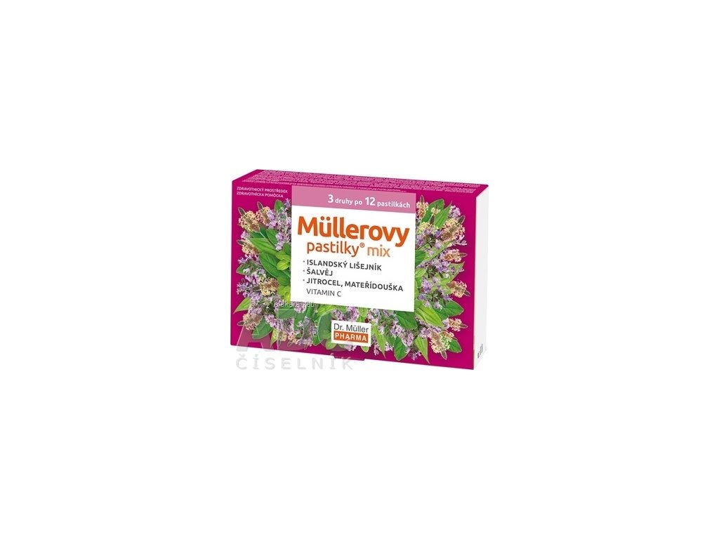 - Müllerove pastilky šalvia a vitamín C.