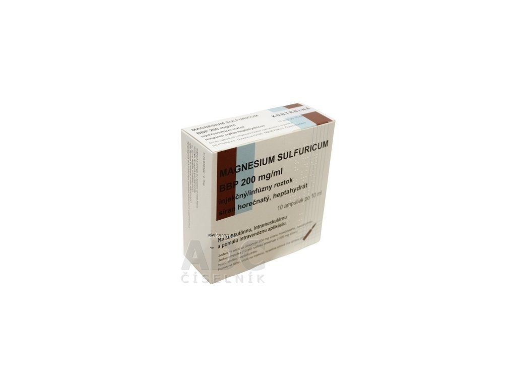 | Názov produktu podľa ŠÚKL: | MAGNESIUM SULFURICUM BBP 200 mg/ml injekčný/infúzny roztok sol inj 10x10 ml/2000 mg (amp.skl.) |