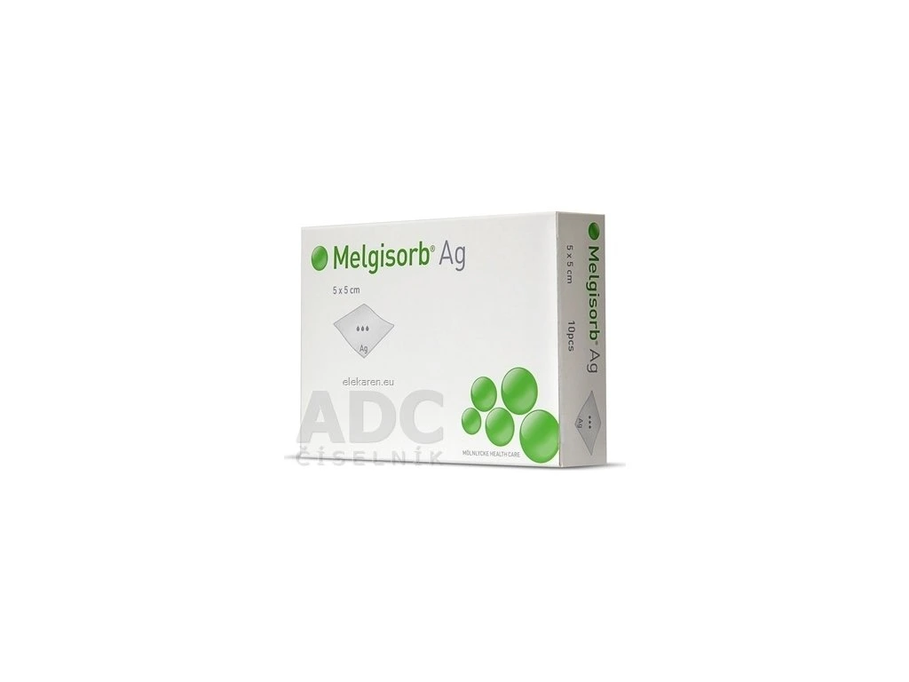 Melgisorb Ag je sterilný netkaný antimikrobiálny tampón s vysokou absorpčnou schopnosťou, zložený z alginátu vápenatého s vysokým obsahom G (kyseliny gulurónovej), karboxymetylcelulózy (CMC) a komplexu iónového striebra (fosfát striebra, sodíka, vodíka, zirkónia), ktorý v prítomnosti výpotku z rany uvoľňuje ióny striebra.
