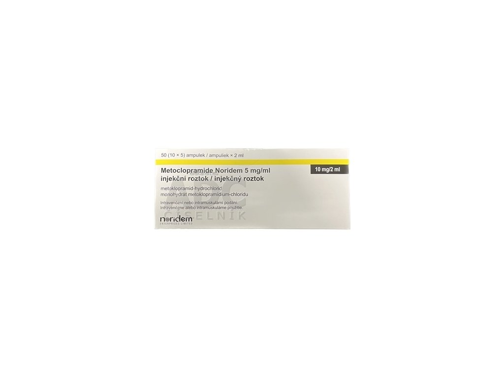| Názov produktu podľa ŠÚKL: | Metoclopramide Noridem 5 mg/ml injekčný roztok sol inj 50(10x5)x2 ml/10 mg (amp.PP) |