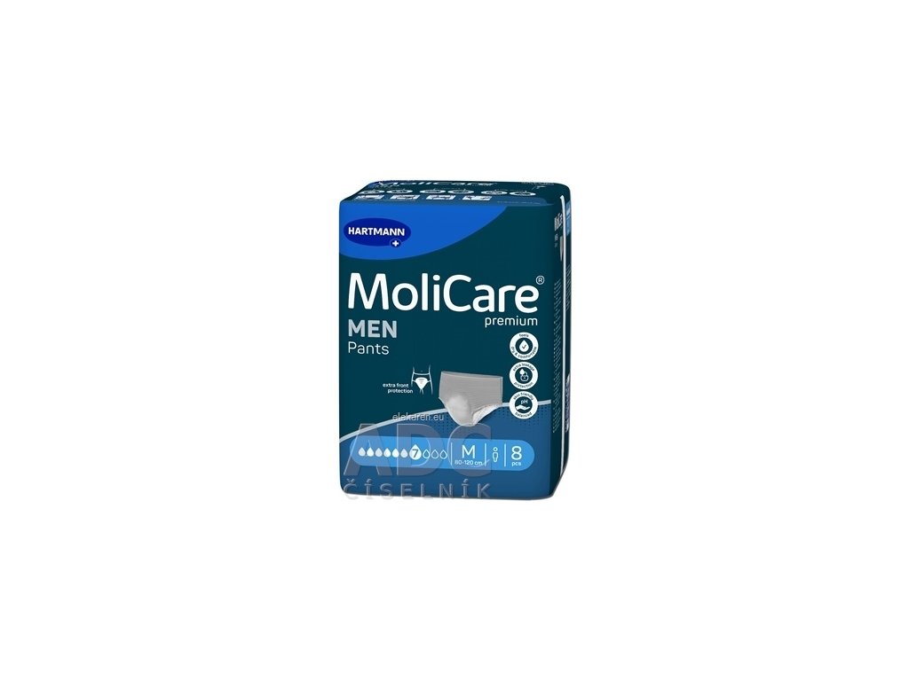| Názov produktu podľa ŠÚKL: | Nohavičky absorpčné pre mužov MoliCare Premium MEN PANTS 7 drops M 80-120cm, 1455ml |