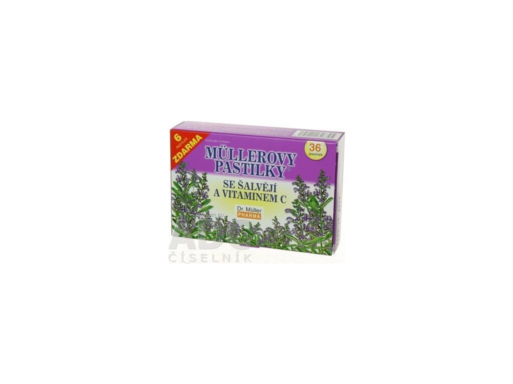 MÜLLEROVE PASTILKY SO ŠALVIOU A VIT. C - (pri nachladení) 30+6 zadarmo (36 ks)