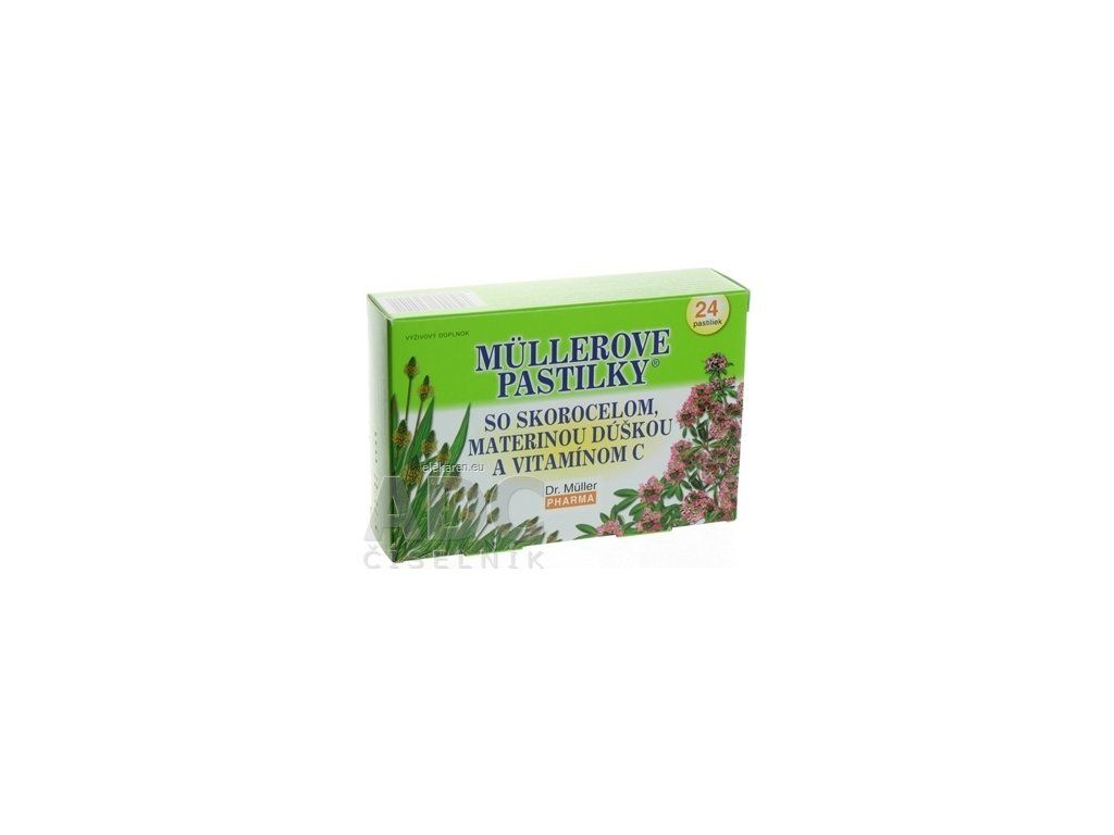 Výživový doplnok Müllerove pastilky® so skorocelom, materinou dúškou a ďalšími bylinnými extraktmi. Obsah medu a vitamínu C zlepšuje chuťové vlastnosti pastiliek. Viac na adc.sk