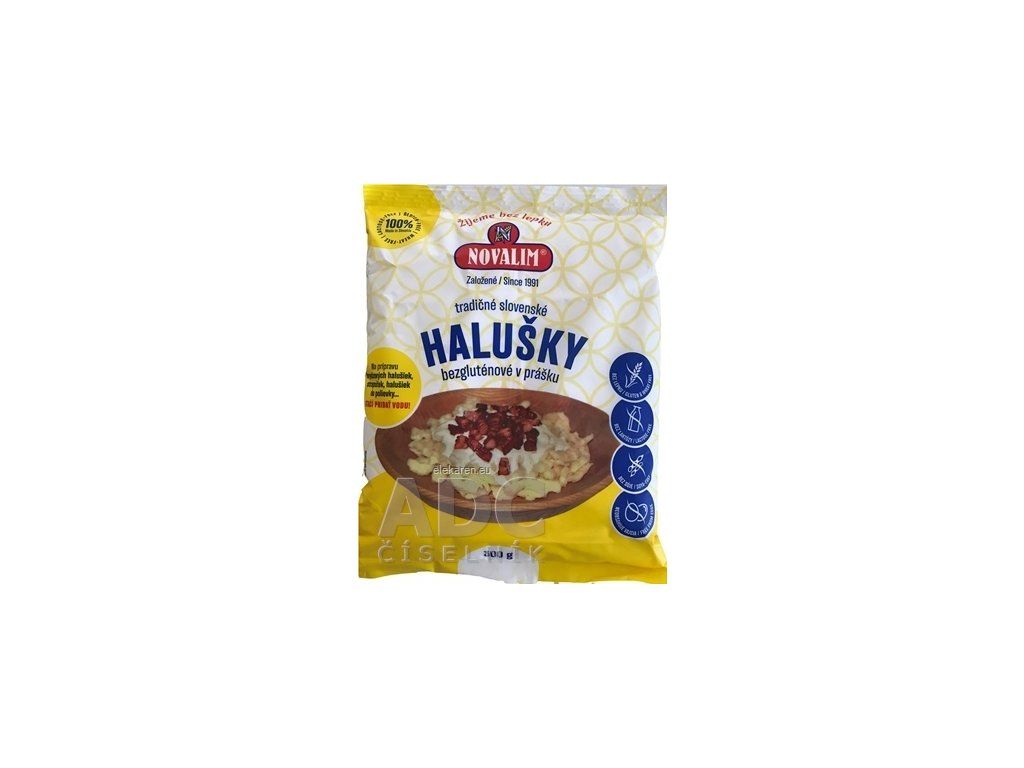 Dietetická potravina. Múčna bezgluténová zmes vyrobená z prirodzene bezlepkových a bezpšeničných surovín. Je určená na prípravu tradičných halušiek - bryndzové, tvarohové, strapačky - alebo ako príloha k mäsovým jedlám na šťave. Vhodná na výživu pri celiakii, resp. sprue.