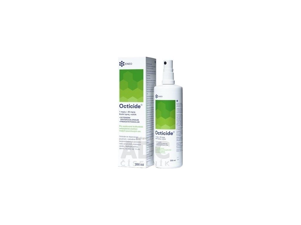 | Názov produktu podľa ŠÚKL: | Octicide 1 mg/g + 20 mg/g dermálny roztokový sprej aer deo 1x250 ml (fľ.HDPE) |