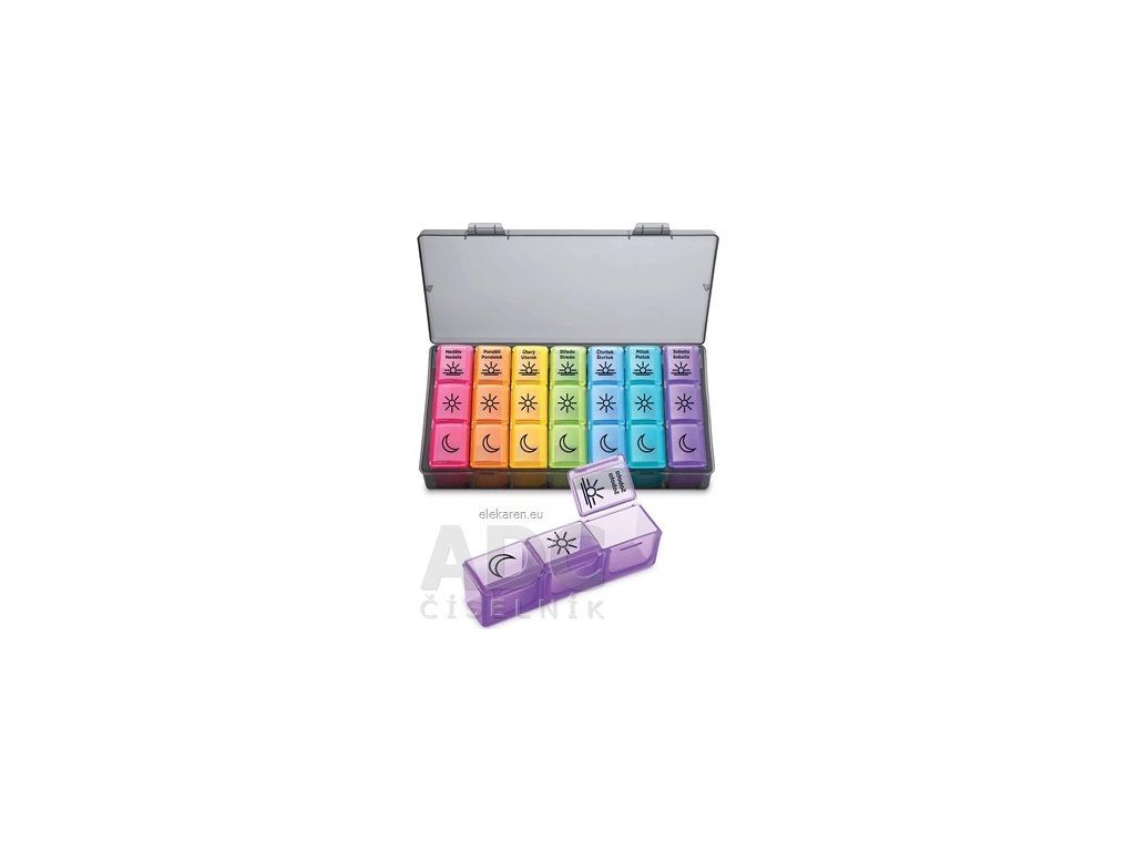 Praktický organizér na ukladanie tabliet so samostatným puzdrom na každý deň v týždni.