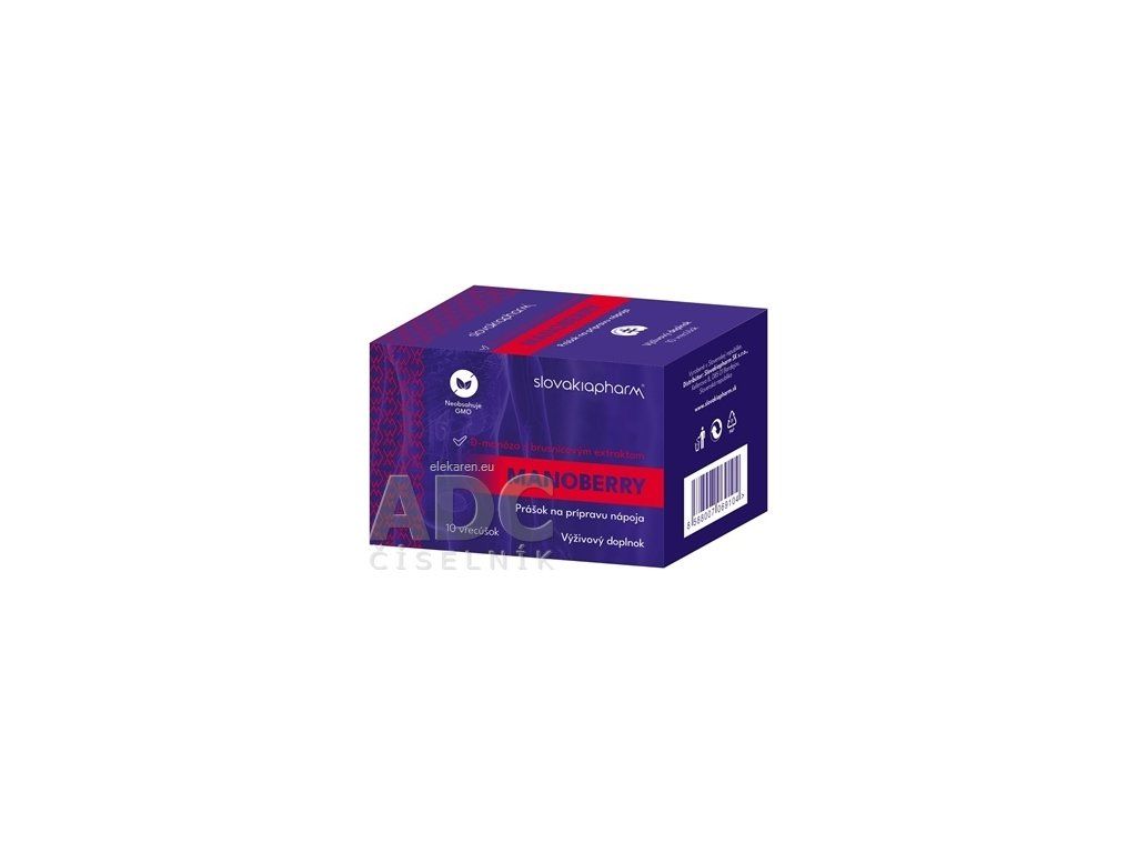 Slovakiapharm MANOBERRY obsahuje 10 vrecúšok s D-manózou 2000 mg a brusnicovým extraktom (60 mg PAC). Viac na adc.sk