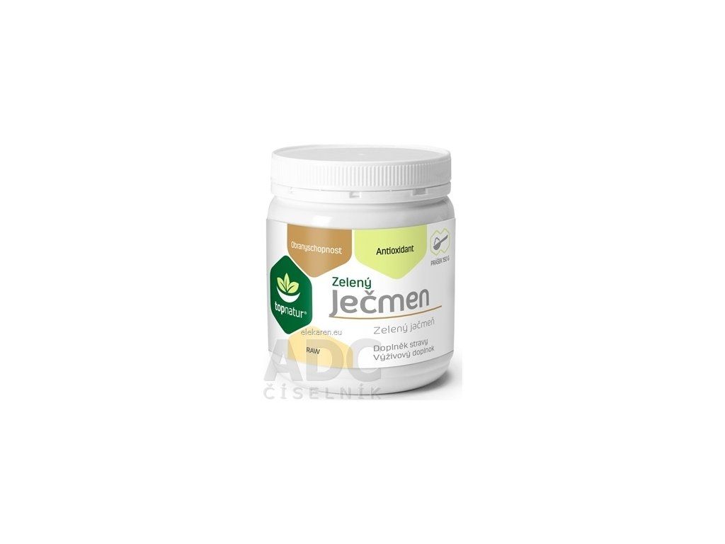 Zloženie : 100 % sušený mladý jačmeň ( Hordeum vulgare ) Viac na adc.sk