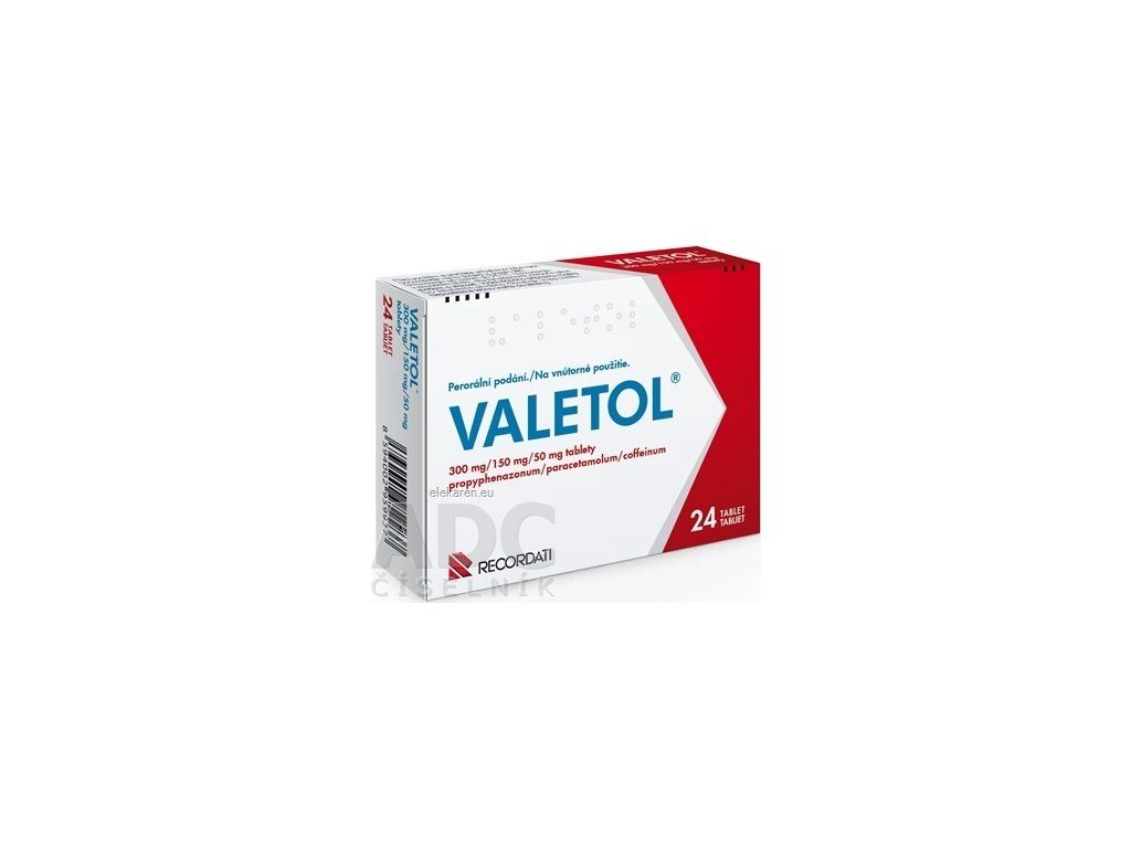 | Názov produktu podľa ŠÚKL: | VALETOL tbl 24 (blis.PVC/Al) |